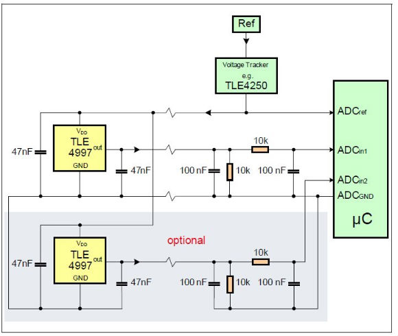 The evaluation board allows evaluation of the linear Hall TLE 4997 family.